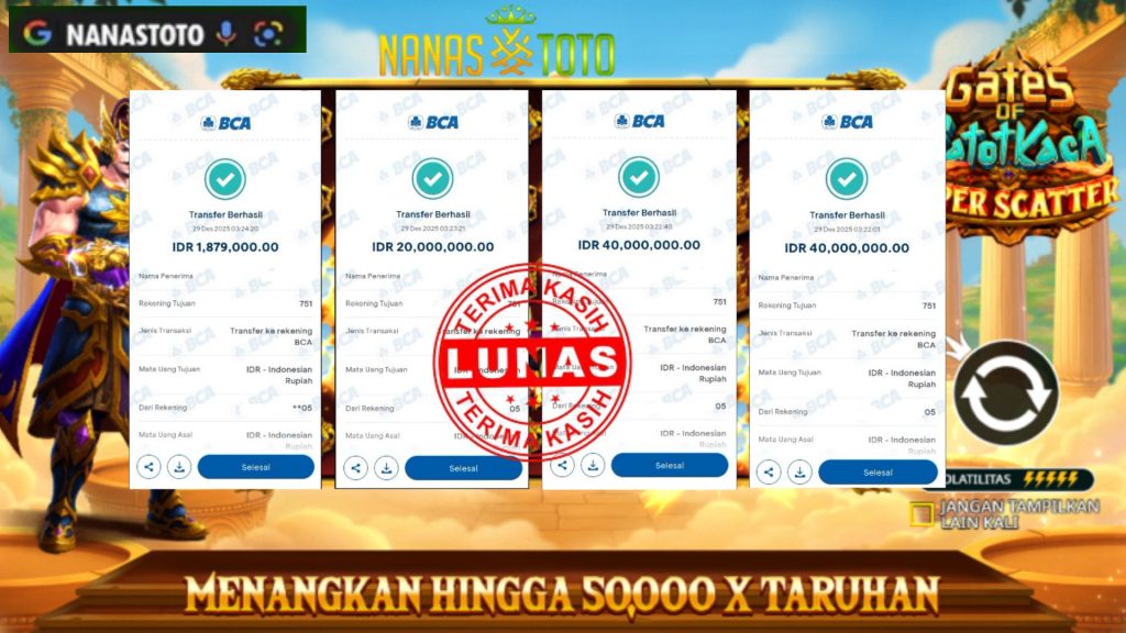 Masih ragu menang besar tidak di bayar? Hal tersebut tidak berlaku di NANASTOTO. Anda menang dengan jumlah berapapun pasti akan bayar full,dengan proses penarikan dana/WITHDRAW hanya dalam hitungan menit.